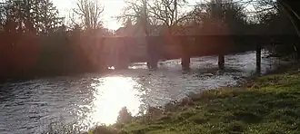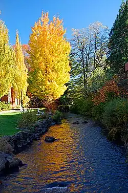 Artificial structures built in the mid-19th century altered the course of the original lower reaches of Mill Creek.[2] Waller Dam, built around 1864 and modified in 1915, split Mill Creek into a millrace and what is sometimes referred to as North Mill Creek.[6] The millrace, which originally powered a woolen mill, flows through the Willamette University campus.[6]
