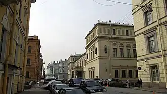 Millionnaya Street (Russian: Миллионная улица), a street on the left bank of the Neva in the Central District of St. Petersburg in Russia, runs - parallel to the Palace Quay - from the Swan Canal to the Palace Square. Significant buildings on Millionnaya Street include the New Hermitage Museum, the Chief Pharmacy, the Marble Palace, and the New Michael Palace. The street neighbors another roadway, Moshkov Lane.