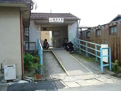 Minami-Hinaga Station (南日永駅, Minami-Hinaga-eki) is a railway station on the Kintetsu Utsube Line in Yokkaichi, Mie Prefecture, Japan, operated by the private railway operator Kintetsu. It is 2.5 rail kilometers from the terminus of the line at Kintetsu-Yokkaichi Station.[1]