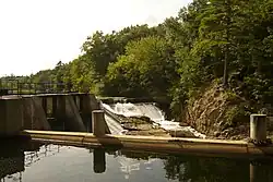 The park encompasses 325 acres (132 ha) on both sides of the Everett Turnpike.[1] The name "Mine Falls" dates from the 18th century, when low-quality lead was supposedly mined from the islands below the falls.[2] In the early 19th century, the potential of the Nashua River to drive the wheels of industrial mills was recognized after the success of the Merrimack Canal, dug in the 1820s in Lowell, Massachusetts, 10 miles (16 km) downstream from Nashua.[3][4]