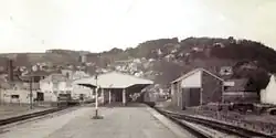 The station was originally built with just one platform. The station offices were on the platform and a goods shed was opposite, while an engine shed was provided behind the platform. In 1905 a second track was added on the opposite side of the platform and a new signal box was brought into use. An iron hut was added to provide more accommodation but was removed in the 1920s when the main building was extended towards the town. The next major alterations came in 1934 when the original single track line was replaced by a double line to cope with the heavy holiday traffic, and a new signal box built. The platforms were extended at the same time. They were now 1,250 feet (380 m) long and a 200 feet (61 m) canopy was provided to give extra shelter at the town end.[2]