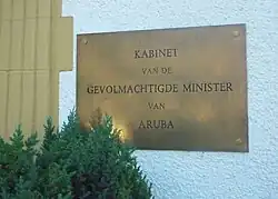 The Minister Plenipotentiary of Aruba (Dutch: Gevolmachtigde Minister van Aruba) represents the constituent country of Aruba in the Council of Ministers of the Kingdom of the Netherlands. The current Minister Plenipotentiary of Aruba is Ady Thijsen. The Minister Plenipotentiary and his cabinet are seated in the Arubahuis (Aruba House) in The Hague.