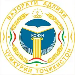 Russian: Министерство Юстиции Tajik: Вазорати адлияи Ҷумҳурии Тоҷикистон | |
