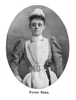 Nurse Minnie A. Bere, D.C.S. (6 January 1875 - 22 November 1910) was a Scottish medical missionary. Bere was the first nurse to carry out foreign mission work for the Church of Scotland's Mission in the newly founded hospital in Yichang, China. She trained Chinese nurses in the hospital and assisted teaching in the local schools in Yichang. She documented her life in China through letters she sent to the Angus and Mearns Council of the Church of Scotland's Woman's Guild.