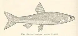 The minnow-nase, (Chondrostoma phoxinus) is a species of freshwater ray-finned fish in the family Leuciscidae. It is found in Bosnia and Herzegovina and Croatia. Its natural habitats are rivers, intermittent rivers, and inland karsts. It is threatened by habitat loss and considered Endangered.