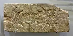 Stefanos Xanthoudidis, who published the find in 1900 described the two moulds, which were made from relatively soft and brittle schist as Plate Α and Plate Β.[1] His plaster casts, which are also reproduced on the right hand side, are mirror images of the original moulds. Both moulds are 225 mm (8.9 in) wide, 100 mm (3.9 in) high and 20 mm (0.8 in) thick,[2] while the width of the plaster casts is 230 mm (9.1 in).[3]