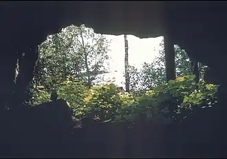The area around Minong Mine sports small prehistoric pits, as well as the larger pits (now filled with water) and shafts from the 1870s mine.[5] Piles of tailings, the wreckage of a smithy, railroad tracks, and ore carts also are at the site.[5][14] As of 1994, the dam near McCargoe Cove was still intact.[14]