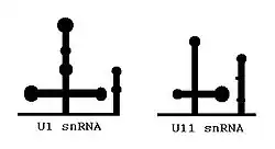 - ^ Kolossova I, Padgett RA (1997). "U11 snRNA interacts in vivo with the 5' splice site of U12-dependent (AU-AC) pre-mRNA introns". RNA. 3 (3): 227–33. PMC 1369475. PMID 9056760.