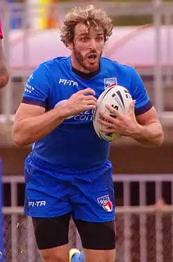 In October 2016, Bergamasco was selected in Italy's 22-man squad for their 2017 Rugby League World Cup qualifying campaign.[4] He played at centre in two matches, kicking 7 goals for Italy against Serbia. In March 2017, Bergamasco joined the Saluzzo Roosters during their inaugural season in the French National Division 2 competition.[5][6] In June 2017, Bergamasco represented Italy in their matches against Lebanon and Spain, kicking 13 goals against the latter.[7] Bergamasco kicked 4 goals in Italy's pre-World Cup match against Malta in October.[8]