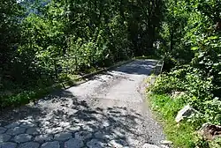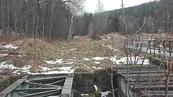 The line continued through sparse residential areas, meadows, and small patches of forest, running along the Kwisa river valley at the base of Sępia Góra. After exiting the forest, the line passed under another road bridge and entered Świeradów-Zdrój railway station, having climbed an additional 50 meters from the previous station.[3][4]