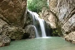 The geological structure of the park consists of ultra basic rocks and volcanic-sedimentary formations (diabase chert) of Jurassic Era and the carbonates from the lower and upper Cretaceous.[3] The geological structure of Mirusha canyon mainly compose Mesozoic limestone cliffs with tendency to drop in the direction of the water flow. Extension of these rocks in the direction northwest–southeast, and dropping to the southeast, presents geological extension of rocks.