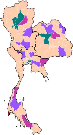 As with all prior editions, the appointment of provincial representatives was prohibited. All competitors were selected through 57 regional pageants conducted across 36 provinces to identify the 77 provincial titleholders. However, since there was no restrictive rule that the provincial contests had to be held in that respective province; hence, 30 provincial representatives (approx. 40% of the total) were awarded titles at the event held in the Bangkok Metropolitan. In certain instances, multiple provincial titles are conferred in a single competition.[14]