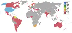 Ceylon, Ghana, Italy, Kenya, Morocco, Peru, Switzerland, Thailand and Uganda, withdrew from the competition for unknown reasons.