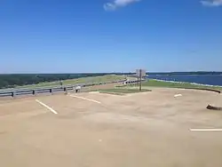 MS 315 Scenic begins at an interchange between MS 35 and I-55 (the latter's exit 246) in the northern part of the city of Batesville. It heads west, concurrent (overlapped) with MS 35, where the highway leaves the Batesville city limits and passes by the Panola County Airport and crosses Hotopha Creek. MS 35/MS 315 Scenic heads northeast through farmland for several up a narrow valley to enter John W. Kyle State Park, where they travel along the southern shore of Lower Lake and pass by several businesses to come to an intersection with MS 315, where MS 35 ends and MS 315 Scenic follows MS 315 south to gain elevation as they climb towards the top of Sardis Dam. MS 315 Scenic now breaks off along its own path at another intersection and passes northwestward along the very top of Sardis Dam for a little over two miles, passing by the Arty R. Tapp Overlook, Beach Point Public Use Area, and the John W. Kyle State Park Lodge. MS 315 Scenic makes a sharp left turn at Spillway Road, which leads to the Mallard Pointe Golf Course and the Sardis Lake Field Office (as well as other portions of the state park), and winds its way down the side of the dam, parallel to its spillway, for about a mile to a wooded portion of the valley, where MS 315 Scenic comes to another intersection with MS 315. They become concurrent and wind their way west through hilly woodlands to leave the state park and enter the town of Sardis, where they come to another interchange with I-55 (exit 252), where MS 315 Scenic ends and mainline MS 315 continues west (signed north) into downtown.