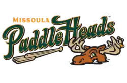 In 2019, the team rebranded as the Missoula PaddleHeads, a term referencing moose antlers being known as "paddles", making the male moose a "paddlehead".[5] The brand also showcases the diversity of kayaking, canoeing and other river-based activities found in Missoula, while the logo features a baseball bat paddle and a partially submerged moose.[6]