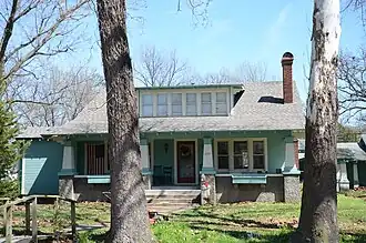 The Mitchell House is a historic house at 115 North Nelson in Gentry, Arkansas. Built in 1927, it is the finest local example of Craftsman architecture. It is a 1+1⁄2-story wood-frame structure, with a side-gable roof that extends over the front porch. The roof's wide eaves and porch area have exposed rafter ends and large brackets typical of the style, and there are wide shed roof dormers at the front and rear.[2]