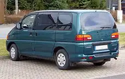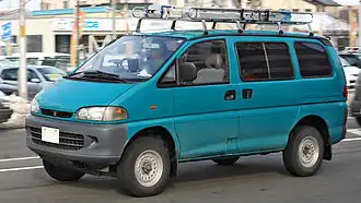 The Mitsubishi Delica (Japanese: 三菱・デリカ, Hepburn: Mitsubishi Derika) is a range of vans and pickup trucks designed and built by the Japanese automaker Mitsubishi Motors since 1968. It was originally based on a cabover van and pickup truck introduced the previous year, also called the Delica, its name a contraction of the English language phrase Delivery car.[1] This pickup truck, and a commercial van derived from it has received many names in export markets, being sold as the L300 (later L400) in Europe, Jamaica (discontinued after the third generation) and New Zealand, Express and Starwagon in Australia, and plain Mitsubishi Van and Wagon in the United States. The passenger car versions were known as Delica Star Wagon from 1979 until the 1994 introduction of the Delica Space Gear, which became simply Space Gear in Europe at least. The most recent version (not available as a commercial vehicle) is called the Delica D:5. With the exception of the first, versions of all generations are still being sold in various international markets.