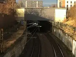For the southern exit of the tunnel, a fly-over for Richard-Lehmann street was built. The tracks towards Stötteritz pass under the tracks to and from Connewitz in an approximately 70 meter long tunnel.