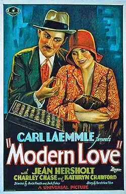 Modern Love is a 1929 American sound part-talkie comedy film directed by Arch Heath and written by Albert DeMond and Beatrice Van. In addition to sequences with audible dialogue or talking sequences, the film features a synchronized musical score and sound effects along with English intertitles. The soundtrack was recorded using the Western Electric sound-on-film system. The film stars Charley Chase, Kathryn Crawford, Jean Hersholt, Edward Martindel, Anita Garvin and Betty Montgomery. The film was released on July 21, 1929, by Universal Pictures.[1][2][3]