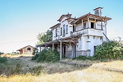 The Mogadouro station was 5.8 km from the town of the same name, via the EN221.[1] It consists of a passenger building (located on the northwest side of the track),[2] a covered pier, an electrical building, a water tank, a workshop and staff quarters.[3]