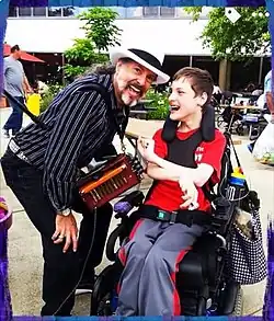 Mojo is the vocalist, accordion player, songwriter, and a sort of "father figure" leader of Mojo & The Bayou Gypsies.[11] He lives in Southwest Louisiana, outside of Breaux Bridge.[12] "Mojo" is the only name he uses. When asked about his longer legal name he has said that "only the IRS and the police" know it.[12] Mojo has been performing zydeco and Cajun music since 1974.[13]