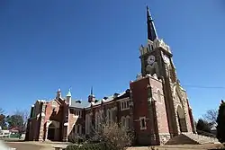 The town has several botanical gardens, a monument to local Molteno activists in the liberation struggle and a historic library built from local stone. The surrounding mountains are largely composed of sandstone of exceptional quality, and there were originally plans to build the whole town from this beautiful rock, as a "Sandstone City". Nonetheless, several of the oldest buildings in the town are still made from local stone, fashioned by Italian artisans. The Old Mill is one example, built in 1874 and restored in 1991, as is the local Church and "Drostdy" (Magistrate's office).[8] Molteno is also home to the Stormberg biltong factory. The R47-million factory is the town's largest employer employing 250 residents.[19][20]