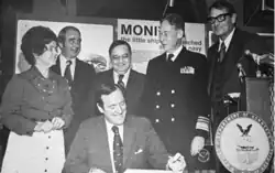 In 1973, the wreck of Monitor was located on the floor of the Atlantic Ocean by an interdisciplinary team of scientists from Duke University’s Marine Laboratory.[7] The discovery was preceded by extensive historical research and the selection of probable areas where Monitor sank. The search team located what they believed to be the wreck of Monitor using side-scan sonar and remotely operated cameras. In 1974, the United States Navy and the National Geographic Society launched a second expedition that confirmed the identity of Monitor and produced detailed photographic documentation of the wreck site. The next year, on February 5, 1975, the site was designated as the nation’s first national marine sanctuary.[7] In 1986, Monitor was designated a National Historic Landmark.[8]