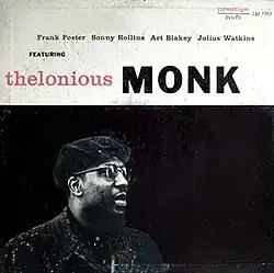 Monk (Prestige PRLP 7053)[3] is a 1956 compilation album by jazz pianist and composer Thelonious Monk, featuring material recorded from 1953 to 1954 for the Prestige label and performed by Monk with two quintets, one featuring Julius Watkins, Sonny Rollins, Percy Heath, and Willie Jones and one featuring Ray Copeland, Frank Foster, Curly Russell, and Art Blakey.[4] It was originally titled both Thelonious Monk [on its 1956 cover][5] and Thelonious Monk Quintets [on its labels][6] (PRLP 7053). Over the following decade, it was also re-released as Wee See (PRLP 7245)[7] and The Golden Monk (PRST 7363)[8] The most common cover art (with the Monk title), is 1958 revision, designed by Reid Miles.[9][10]