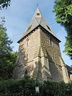 The tower is 13th-century of three stages with a corbelled cornice and a shingled timber broach spire. The second stage has lancets with labels, the first stage a square-headed window in each wall. The fame of the church derives from it being where Sir Henry Williams Baker was from 1852 to 1877. It was here that he worked as Chairman of the Committee of Compilers for Hymns Ancient and Modern.
