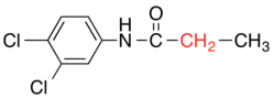 A major issue in the Patent Office was whether the patent application should be denied because 3,4-DCPA was obvious from previously known products, the most significant of which was 3,4-DCAA (3,4-dichloroacetanilide), a chemical with some similar properties and a similar physical structure. Both were useful in making pigments and both had herbicidal properties. The structural difference between the two "closely related" compounds was that 3,4-DCAA "differ[ed] in its structural formula solely by having one less CH2 group" than 3,4-DCPA.[4] Because of the similarity in structure between 3,4-DCPA and other chemicals, including 3,4-DCAA, the Patent Office rejected the patent application on obviousness grounds. Monsanto then tried to persuade the Office to withdraw the rejection by submitting documents to show that DCPA was not obvious, because it had greatly superior and unexpected selective herbicidal activity.