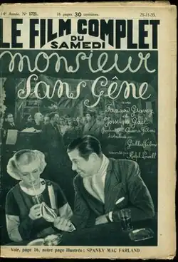 Monsieur Sans-Gêne is a 1935 French romantic comedy film directed by Karl Anton and starring Fernand Gravey, Josseline Gaël and Ginette Gaubert. The following year it was remade as an American comedy One Rainy Afternoon, released by United Artists.[1]