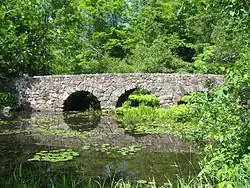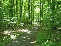 No trace of indigenous occupation has been found in the park. However, it is likely that the territory was occupied during the archaic period beginning at least 8,000 years ago and continuing through the Sylvicole (1000 B.C. to 1500 A.D.) until the arrival of the French in the 16th century. The native indigenous culture associated with Mont-Saint-Bruno is that of the St. Lawrence Iroquoians, who disappeared around 1580.[18]