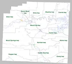 - ^ 2011 Boundary and Annexation Survey (BAS): Montgomery County, AR (PDF) (Map). U. S. Census Bureau. Archived from the original (PDF) on October 19, 2012. Retrieved August 12, 2011.