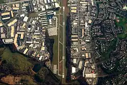 Richardson deeded title to the land to Montgomery County, which leased the land back to him to operate the airport.[1] Richardson planned to operate charter flights and an air taxi to National Airport, Baltimore's Friendship Airport, and the soon-to-be-opened Dulles Airport.[1] The airport was dedicated on October 22, 1960.[5] The airport was initially managed by Richardson's son, James E. Richardson, and Richard T. Kreuzburg, a former Capital Airlines pilot.[5]