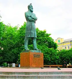 As a result, the square became too modest, after which, according to the decision of the Central Committee of the CPSU and the Council of Ministers of the USSR, it was decided to erect a monument to Friedrich Engels, a German philosopher and one of the founders of Marxism.[5]