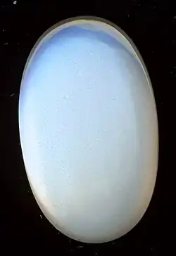 Storms had deposited the moonstones along the beach from the Hermosa Beach city boundary south to about Diamond Street in Redondo Beach.[1] Moonstones belong to the mineral family of feldspars that provide almost two-thirds of all stones on Earth.[2] As the City of Redondo Beach took shape, visitors day-tripping from Los Angeles as well as tourists from the East Coast gathered the moonstones from the many mounds of gemstones washed ashore. It was a popular pastime for amateurs and gemologists alike. Although not very attractive in their natural state, the stones could be cut and polished into beautiful jewelry.[2] One such case involved a local carpenter who sent a moonstone brooch in 1911 to his fiancé living in New York City. The carpenter persuaded his fiancé to join him in Southern California as his bride as he bragged about the beautiful moonstones washing up on the local beaches.[3]