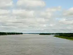The Moose River is a river in the Hudson Plains ecozone of northern Ontario, Canada. The river flows 100 km northeast from the confluence of the Mattagami and Missinaibi Rivers into James Bay. Its drainage basin is 108,500 square kilometres (41,900 sq mi) and it has a mean discharge rate of 1,370 cubic metres (48,000 cu ft). Its full length is 547 kilometres (340 mi) if counted from the head of the Mattagami River.[1]