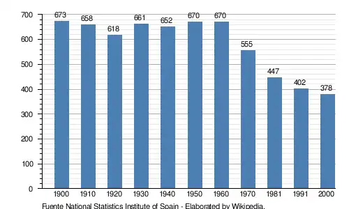 Although is suffering the effects of the general depopulation that involves the rural areas of the province, it is one of the most actives villages in the Sayago county. One example of this activity is the craft fair that takes place on every 15 August.[3] Statistics show the mentioned depopulation since the rural flight started in Spain in the 1960s: