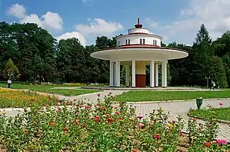 In 1919-1939,[5] Morshyn was in Polish territory and, as "Morszyn-Zdrój," was a popular spa. The spa belonged to the Medical Association (Towarzystwo Lekarskie) from Lviv (Lwów), in late 1920s almost 1000 guests came there yearly. When western Ukraine was under Polish authority, the city was part of the Ivano-Frankivsk regional administration, Stanisławów Voivodeship. Currently the town is located in the close proximity to Ivano-Frankivsk Oblast and the Carpathian Mountains.[6] Currently the city is a major national tourist resort as well as a health resort. The city continues to carry on its legacy as one of the best health resorts in Europe.