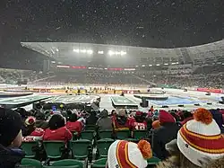 - On October 26, 2019, Mosaic Stadium hosted the 2019 NHL Heritage Classic, featuring the Winnipeg Jets and Calgary Flames.[31] The Regina Pats hosted the Calgary Hitmen in a Western Hockey League (WHL) game the next day, the Prairie Classic.[32] The Pats had originally planned to host an outdoor game against the Moose Jaw Warriors in February 2018 as part of their centennial season. However, due to slow ticket sales and weather concerns, the outdoor games were cancelled and moved back to Brandt Centre.[33][34]