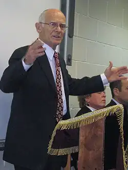 ![]() Rabbi Gottesman speaking at the dedication of the Gottesman Beit Midrash at HANC | |