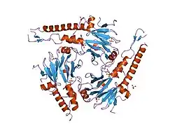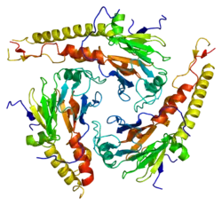SMAD4, also called SMAD family member 4, Mothers against decapentaplegic homolog 4, or DPC4 (Deleted in Pancreatic Cancer-4) is a highly conserved protein present in all metazoans. It belongs to the SMAD family of transcription factor proteins, which act as mediators of TGF-β signal transduction. The TGFβ family of cytokines regulates critical processes during the lifecycle of metazoans, with important roles during embryo development, tissue homeostasis, regeneration, and immune regulation.[5]