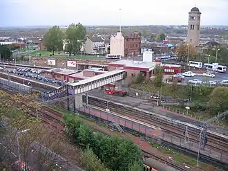 ![]() Motherwell railway station at Platforms 1 and 2. Trains running on the West Coast Main Line stop here. | |||||