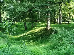 The term earthworks includes any structure made from the earth. In Native American studies, there are three primary types: mounds, circular enclosures, and complexes. All are found in Central Indiana and in the state park.[4] Mounds State Park has a complex of enclosures, both circular and rectangular. There are seven enclosures and four additional earthworks, which have been divided into two groups, the northern complex and the southern complex. The Great Mound enclosure is the dominant structure in the park and the southern group.[4]