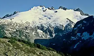 Mount Challenger (8,207 feet (2,501 m)) is in North Cascades National Park in the U.S. state of Washington.[3] A difficult peak to approach due to its isolation, one of the most common routes to the summit involves ascending the Challenger Glacier on the north slopes of the peak.[4][5] Mount Challenger is one of the taller peaks of the Picket Range.