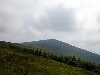 Mount Leinster (Irish: Stua Laighean, pronounced [sˠt̪ˠuə ˈl̪ˠəinˠ]) is a 794-metre-high (2,605 ft) mountain in the Republic of Ireland. It straddles the border between Counties Carlow and Wexford, in the province of Leinster. It is the fifth-highest mountain in Leinster after Lugnaquilla 925 metres (3,035 ft), Mullaghcleevaun 849 metres (2,785 ft), Tonelagee 817 metres (2,680 ft), and Cloghernagh 800 metres (2,600 ft), and the highest of the Blackstairs Mountains. A 2RN transmission site tops the peak with a mast height of 122 metres (400 ft).
