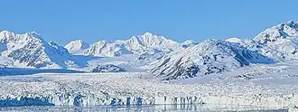 Mount Shouplina is an 8,531-foot-elevation (2,600-meter) mountain summit located 18 miles (29 km) north-northwest of Valdez in the U.S. state of Alaska.[1][4][5] This remote glaciated mountain is set in the Chugach Mountains on land managed by Chugach National Forest.[3] Precipitation runoff from the mountain drains south to Prince William Sound and north to Tazlina Lake → Tazlina River → Copper River. Topographic relief is significant as the summit rises 2,100 feet (640 m) above the East Branch Columbia Glacier in 0.4 mile (0.64 km). The first ascent of the summit was made in 1985 by John Weiland, Matt Kinney, and Bob Shelton.[6] The mountain was named in 1959 by mountaineer Lawrence E. Nielsen and the toponym was officially adopted in 1965 by the U.S. Board on Geographic Names.[1] The word "Shouplina" is a portmanteau blending the names of the Shoup Glacier and Tazlina Glacier which flow from this mountain's south and north slopes respectively.