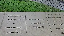 A high flying flagpole was presented to the oval by Alcoa. The American flag was hoisted on it for the first time by Joseph Iozzi, who was a disabled veteran of World War II. Nearly all of the fraternal organizations of the New Kensington community were represented at the dedication ceremony. The Reverend Monsignor Giustino Meniconzi, who was the Vicar-General of the Diocese of Ferentino, Italy, blessed the statue of Christ and the American flag.[43]