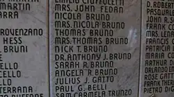 By May 1944, the parishioners had contributed to the war having given thousands of pints of blood to the Blood Banks; given money to the war relief campaigns; been active on the home front, and sent 808 men and women to the Armed Forces. There was a group that prepared and sent out a weekly special bulletin to the parishioners in the Armed Forces. These parishioners were happy to receive news from home on the progress of their new church and many of them sent home money to go towards the building fund. During the war, hundreds of dollars came in from these parishioners fighting in the war. Of the 808 parishioners who went off to war, seven died and their names were engraved on a piece of granite outside of the church: James DiMuzio, Arthur Capo, Nick Costelli, Justine DeFelices, Neal Chipoletti, and Anthony Zaffuto.[16]