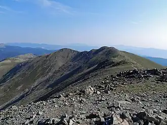 Mount Walter is the second highest named summit in the U.S. state of New Mexico, rising to 13,141 feet above sea level. However it is not usually counted as an independent mountain since it has only about 53 feet (16 m) of topographic prominence, and is only 0.4 miles (0.6 km) north-northeast of Wheeler Peak, the highest peak in New Mexico.[3] Both peaks lie in the Taos Mountains, a subrange of the Sangre de Cristo Mountains, which is in turn a subrange of the Rocky Mountains. They are also in the Wheeler Peak Wilderness of Carson National Forest.